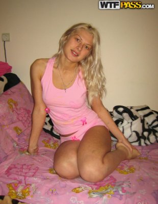 Как то вечером после секса парень раскрутил свою подругу блондинку по фотографироваться на камеру в голом виде. Подруга ломалась и стеснялась и даже сперва не хотела показывать свою бритую письку, но потом ей стало нравиться позировать голой и она дала заценить свою пилотку.