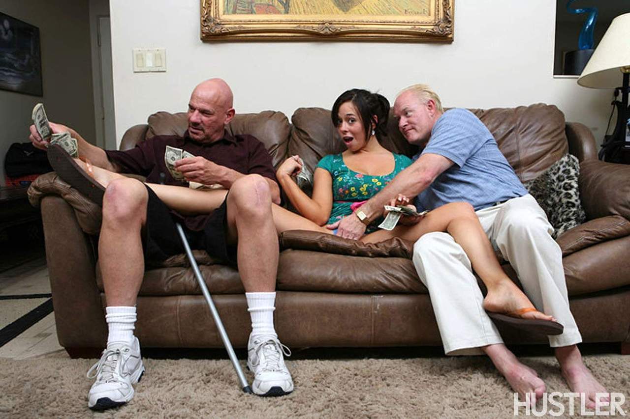 Два старпёра трахают молодую прошмандовку
