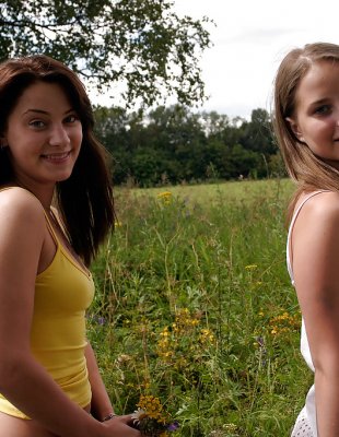 Девчонки фотографируются обнаженными на природе