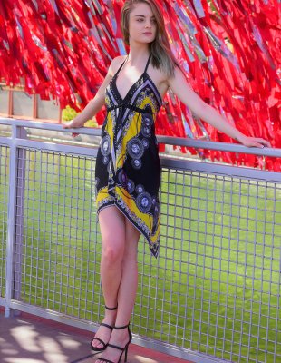 Совсем молоденькая русоволосая крошка прогуливается по улице в цветастом сарафане, забыв надеть трусики. Она без тени смущения демонстрирует свою гладко выбритую промежность и сама возбуждается от этого. Вернувшись, домой телочка приступает к жаркой незабываемой мастурбации, растягивая вагинальную дырочку самотыком и засовывая внутрь руку.