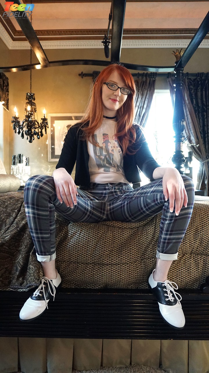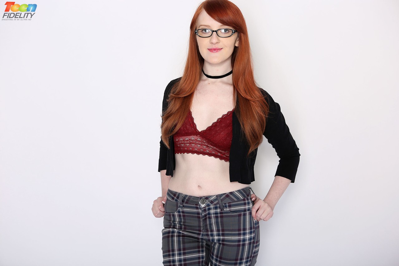 Мужик вставил толстый хуй в красивую влажную киску худой рыжей девушки в очках. Мягко и нежно скользя по стенкам влагалища.