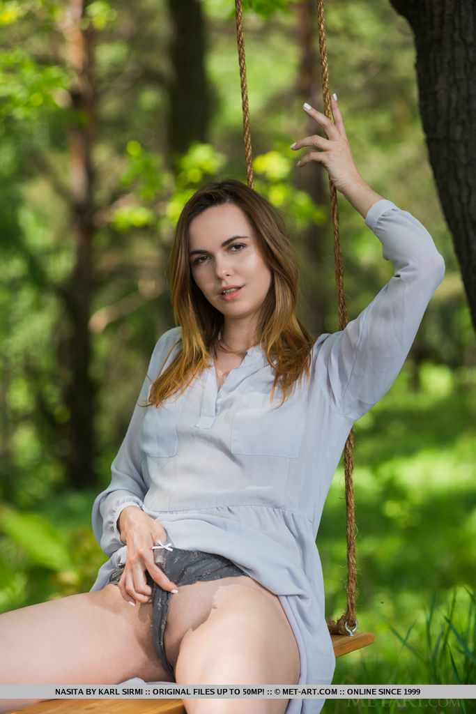 Красотка светит киской на качелях Красивая стройная милашка снимается в обнаженной фотосессии светя своей бритой киской сидя на качелях в лесу. Порноактриса: Nasita +454 10 май 1 17 320 ФОТО Милашки, Красивые, Стриптиз, Природа, Трусики, Платье, Брюнетка