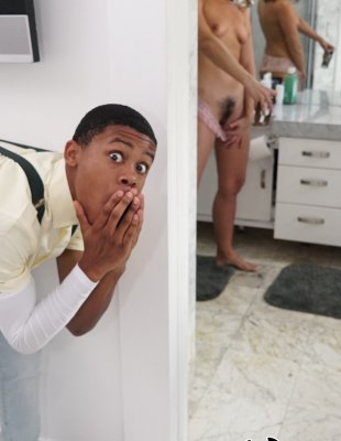 В гости к семье темнокожего паренька приехала мамина подруга. После долгой дороги дама решила принять душ и даже не подозревала, что за ней будет подглядывать этот самый паренек. Пока тетка намывала свою попку, чувак тайком делал фотки, голой пизды маминой подруги и тихонько передергивал свой черный ствол. Но в самый не подходящий момент тётя спалила парня, а так же заценила черный член 20 летнего паренька. Вместо того чтобы сдать молодого ананиста мамке, дама устроила незабываемый секс, а так же отполировала молодой черный член своим ртом.