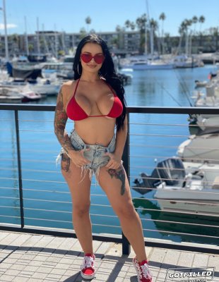 Потрясающая загорелая брюнетка в коротких шортиках и обтягивающей майке сосет член и облизывает яйца своими пухлыми губами, а потом разрешает трахнуть её в киску и кончить не вынимая.