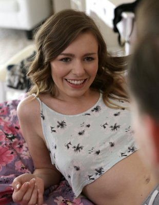 Две сексуальные студентки в коротких шортиках устроили своему знакомому пареньку ЖМЖ с минетом и глотанием спермы.