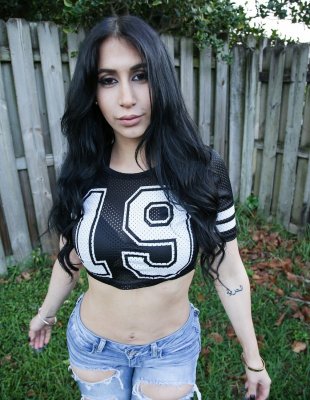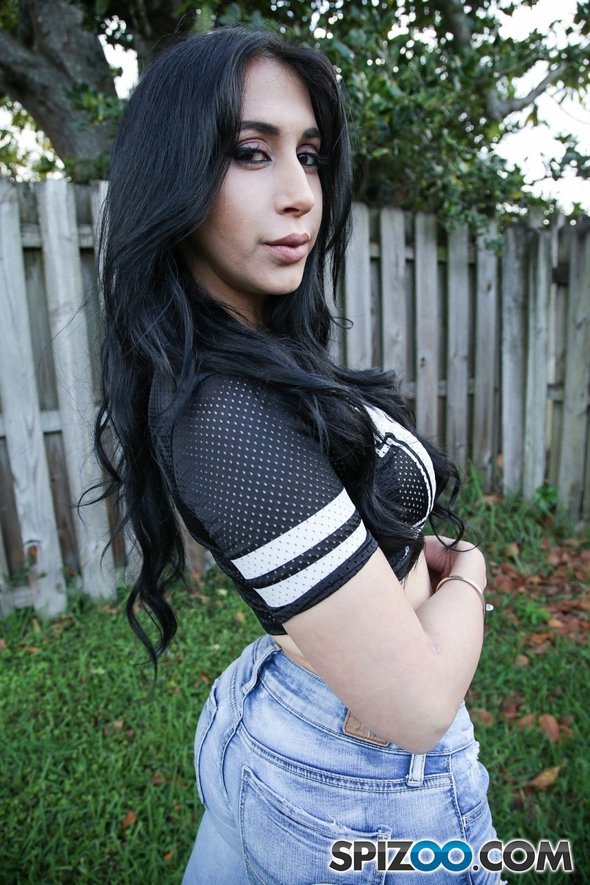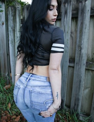 Брюнетка в обтягивающих джинсах совершенно без комплексов сняла джинсы и показала свою большую круглую попку.