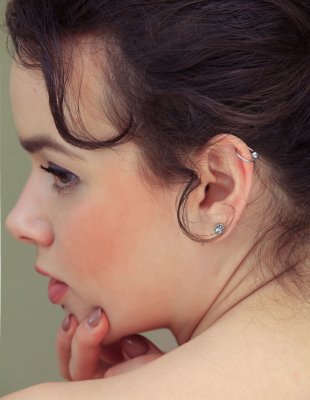 Очаровательная красотка с большой натуральной грудью четвертого размера снимает свои белоснежные трусики и показывает голую киску.
