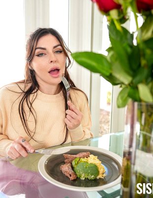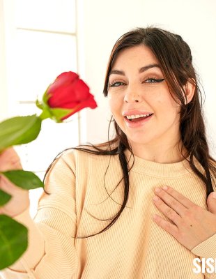 Брюнетка с приятной внешностью решила поздравить парня с днем святого Валентина и позволила залить её влажную киску спермой.