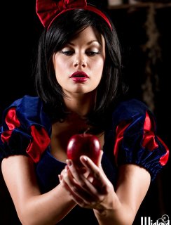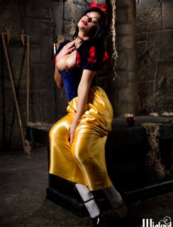 Красотка устроила порно косплей в костюме белоснежки. Она задрала свою желтую юбку и показывает свои вагинальные губки и анальную дырочку.