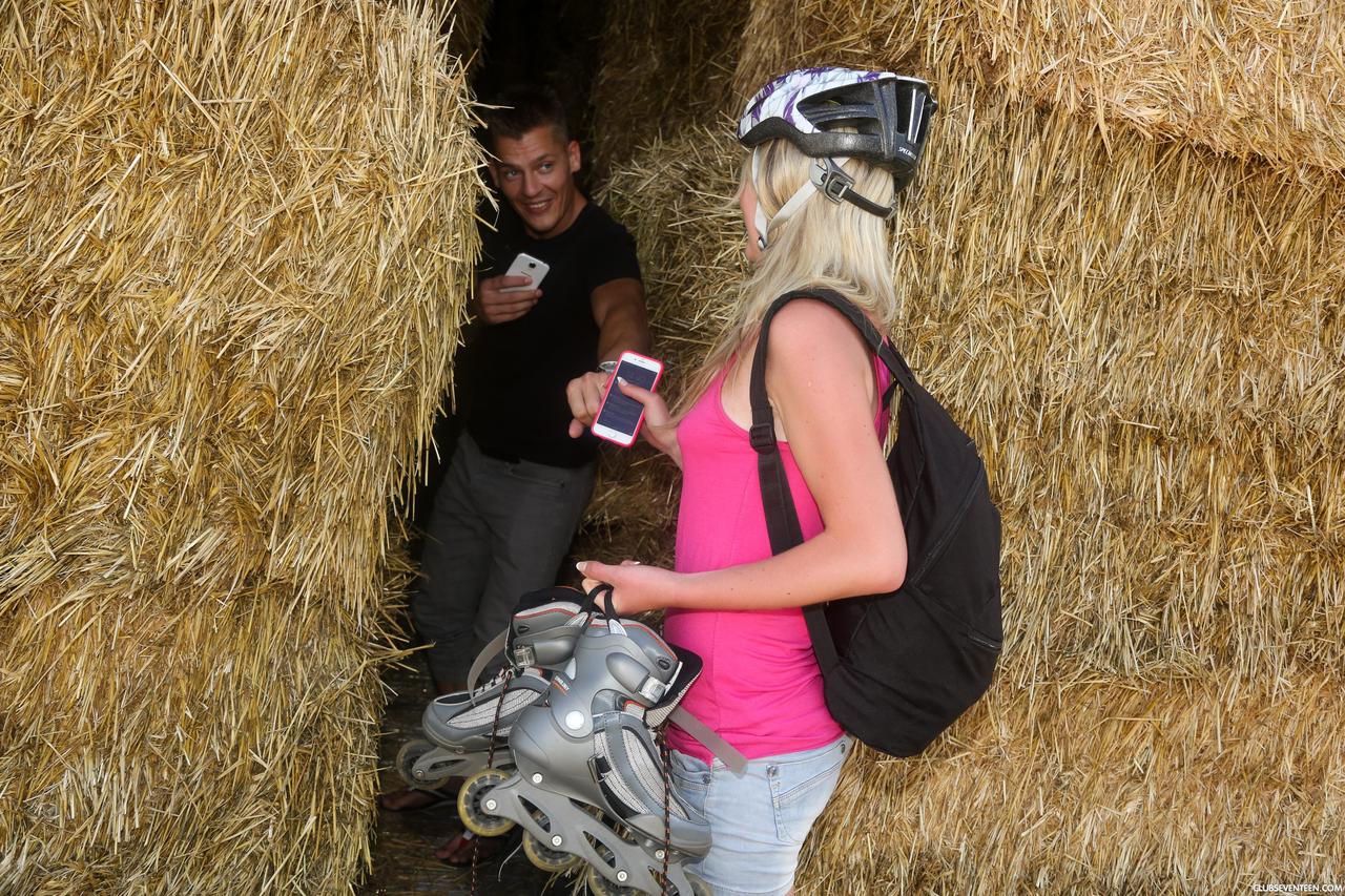 Трахнул блондинку велосипедистку на сеновале