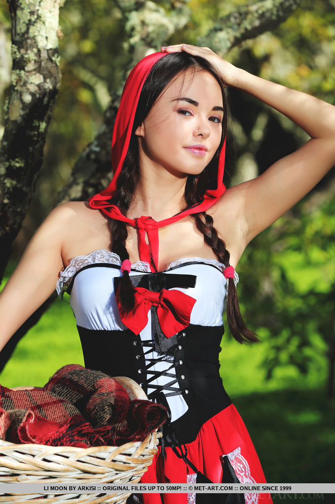 Красивая и голая красная шапочка в лесу