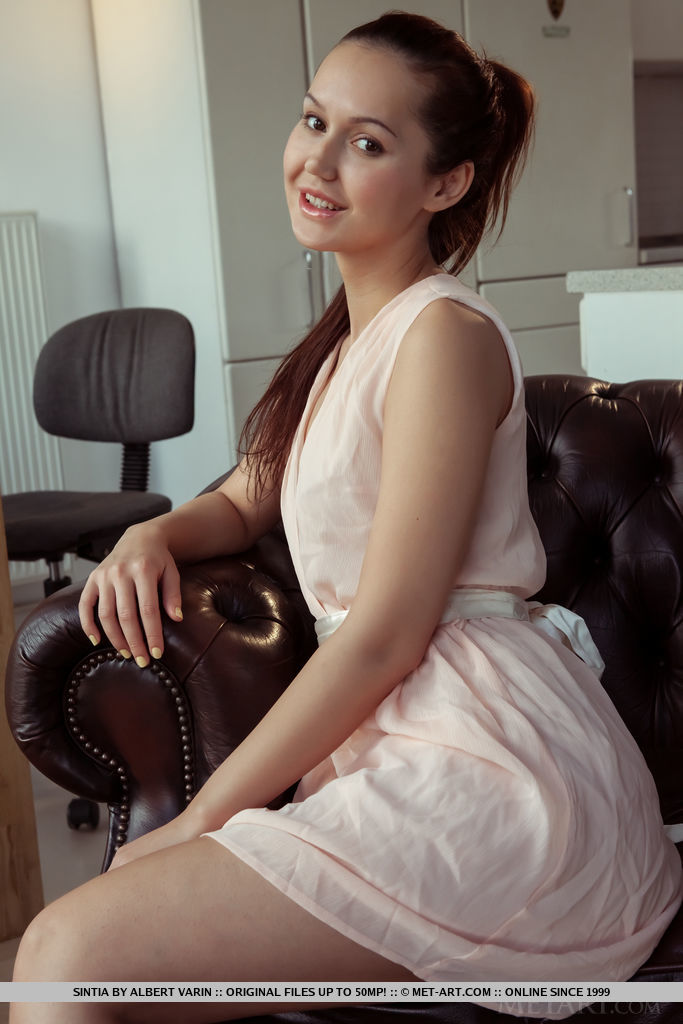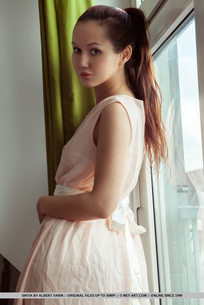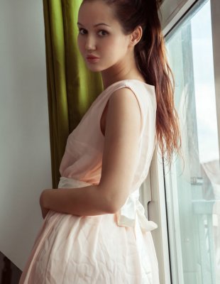 Замечательная девушка с украинскими корнями снимается для горячих обнаженных фото. На схемки красавица пришла в легком розоватом платье и трусиках такого же цвета. По началу девушка показать свою сексуальность в одежде, но потом ей приходится раздеваться, а начинает она со своих нежных трусиков торчащих из под платья. И вот одно движение руки и девушка сдвигает трусики вбок обнажая свою побритую киску.